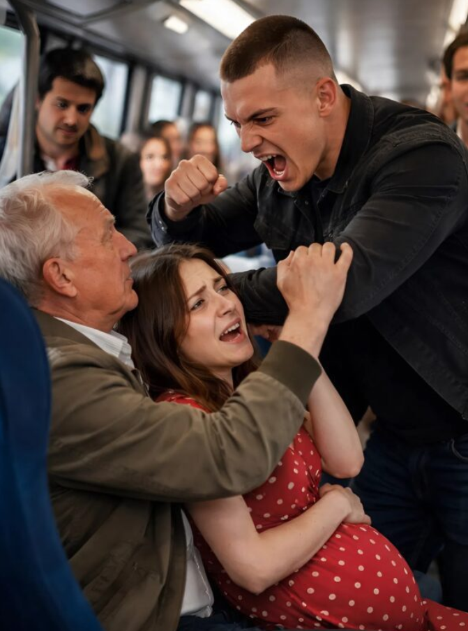 As soon as the young couple boarded the bus, the tension was palpable. The woman was gripping the handrail with one hand, supporting her stomach with the other. Her eyes were red from crying, her movements unsteady, as if she could barely stand. The man followed her closely, giving her no space, and his voice was already thick with anger.